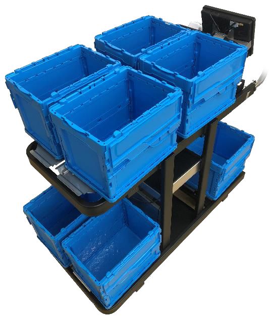 ●「8マルチピッキングカート(PKGM-4800)」(上:コンテナあり、下:コンテナなし)