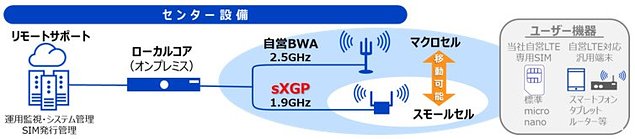 また、複数のPLMN-ID(携帯電話の国際的な識別番号)を認証するLTEコア(ローカルコア)も提供し、sXGPと自営等BWAを同じLTEコアで統合管理することで、それぞれのシステムに共通のSIM(※2)での認証を可能にする。