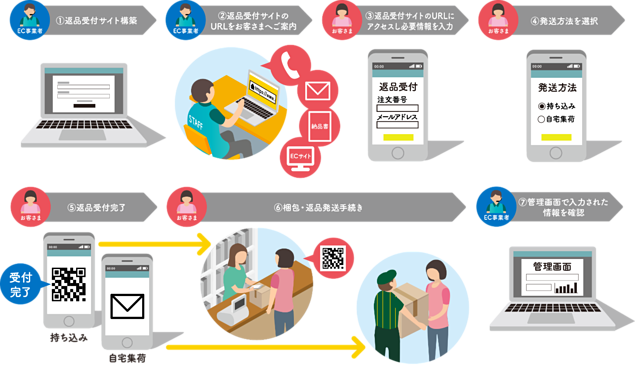 同サービスでは返品手続きや業務をデジタル化することで、従来発生していた顧客による電話での返品依頼や伝票作成の手間等の返品手続きを簡便化するほか、最寄りの宅急便センターやPUDOステーション、一部のコンビニエンスストア等から伝票レスでの返送が可能になる。EC事業者は返品処理時に発生する業務が効率化され、また、返品受付サイトの構築を含めたパッケージでのサービス提供となるので、初期コストを抑えて短期間でサービスを開始することができる。