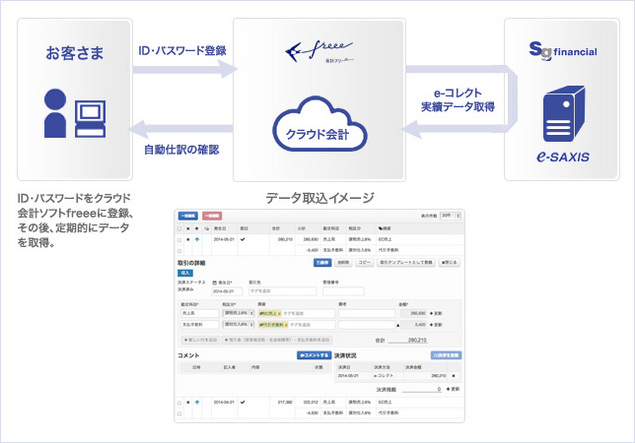 代金引換サービスe-コレクトは、通販事業者様をはじめ多くの方に利用されている。この度、クラウド会計ソフトfreeeとの連携により、さらに便利なサービスの提供が可能となった。従来の会計ソフトでは、e-コレクトの個々の商品の売上や手数料の入力が必要だったが、クラウド会計ソフトfreeeを利用することで、日毎の売上や各種手数料が自動で会計帳簿に記録される。また、データを取り込むだけでなく入金の消し込みまで自動で行え、経理業務の大幅な改善が図れる。