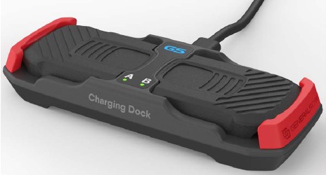 ●コンパクトなデザインでバッテリを交換可能(上)、2スロット バッテリチャージャ(オプション)(下)
