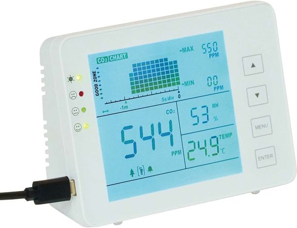 ・ひとめでわかりやすい:リアルタイムにCO2濃度・温度・湿度の3点を測定、1つの画面上に表示