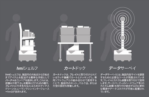 利用者のニーズに合わせてカスタマイズすれば、様々な用途に活用することもできる。タッチスクリーンと棚(シェルフ)をフレイトに組み合わせた「hmiシェルフ」は、荷物を荷積み場所から荷下ろし場所まで動かしたり、パーツ部品をキッティングエリアから組み立てラインまで搬送したりすることに適しており、バーチャルコンベアの役割を果たす。また、カートとフレイトを組み合わせた「カートドック」は大型の部材を移動させることに適している。