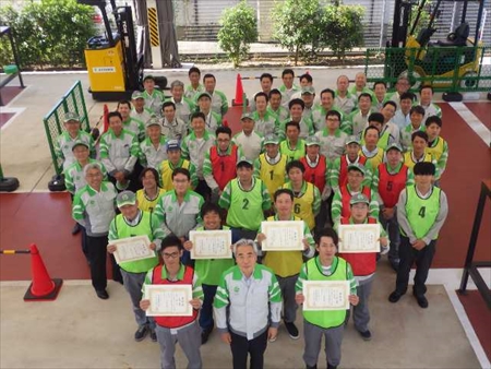 今大会では2017年2月に同社グループ内独自のフォークリフト運転安全規準(KONOIKEス タンダード)に基づき審査を行い、安全規準の定着を促進するとともに、各職場で磨き上げられた運転技能・点検技術・安全知識による高いレベルの競技が繰り広げられた。真剣な眼差しで挑戦した競技者は、緊張した雰囲気の中、日頃磨いた技能や知識を発揮。僅差でバッテリー式カウンター部門より4名、バッテリー式リーチ部門で2名の入賞者が決まった。