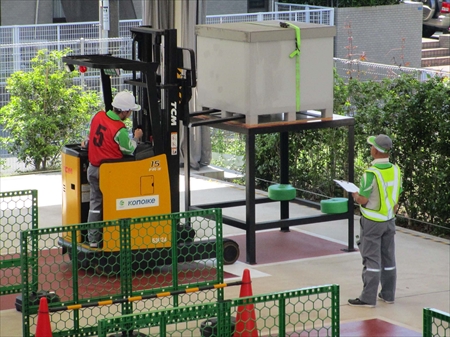 競技科目:(1)学科競技50 分、(2)点検競技10 分/人、(3)運転実技競技(バッテリー式カウンター部門、バッテリー式リーチ部門)10 分/人