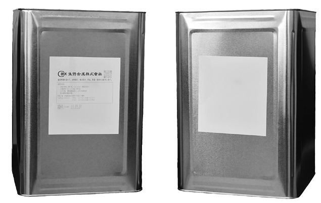 ●サンプル印字した18リットル缶(左)と印字前の18リットル缶(右)