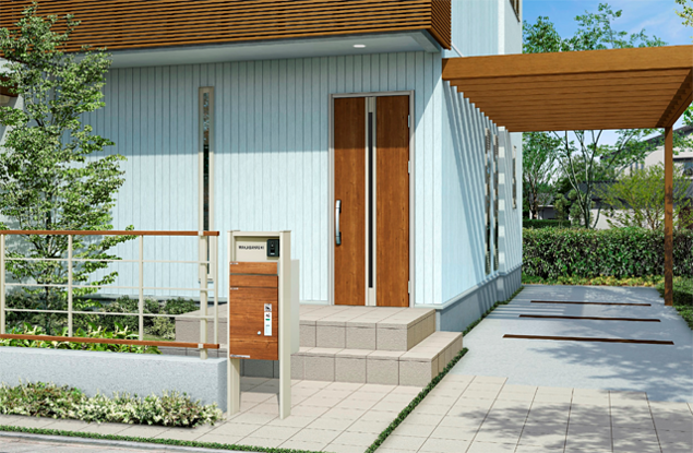 同製品は、玄関ドアや他のエクステリア商材にも設定している木目調標準4色を扉カラーに設定することで、「ルシアス」シリーズ商品との調和はもちろん、住宅外観のトータルコーディネイトを可能にしている。