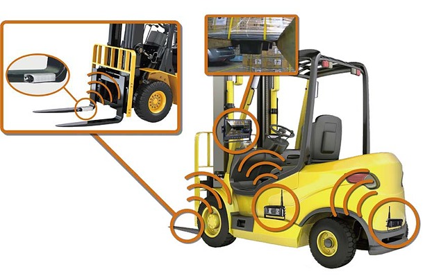 また、多数の作業者やフォークリフトが行き交い、荷物などを保管するラックなどにより死角が多く存在する物流倉庫において、前後左右の周辺環境の確実な把握を可能にし、フォークリフトの運行現場の安全確保に貢献する。