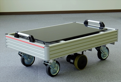POWER WHEEL IIは、大容量リチウムイオン電池を搭載し、高出力モータを用いた独立二輪駆動方式の6輪(中央部駆動輪×2、自在輪×4)台車で8時間の走行が可能。積載スペースは幅650mm×奥行950mm、最大積載重量は100kgでさまざまな実験機材を搭載できる。
