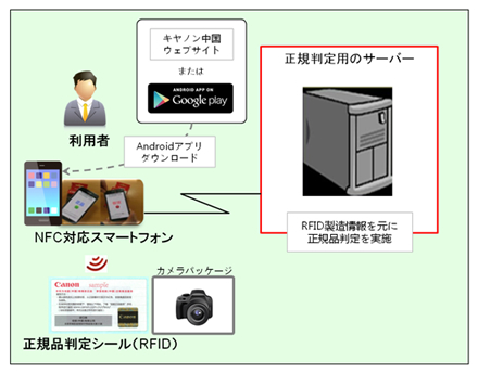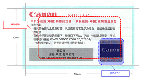 本システムは、同社の中国現地法人である佳能信息系統(上海)有限公司と凸版印刷が共同で開発し、すでに佳能(中国)有限公司(以下、キヤノン中国)で実運用が開始されている。2013年9月現在では、一部デジタル一眼レフカメラの製品パッケージに適用されている。