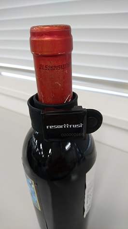 今回採用されたRFIDは、サトーグループのサトーマテリアル(株)が開発した特殊なUHF帯タグ。RFIDは通常、液体の入った容器に貼り付けた場合、干渉でうまく読み取れない難点があるが、今回のタグはボトルに巻き付けるバックル型で、50cmほど離れた距離からでも問題なく読み取れる。ボトルに直接貼り付けないため、ワインの品質への影響もない。RFIDの脱落および差し替えを防止するセキュリティーラベルとセットで提供している。