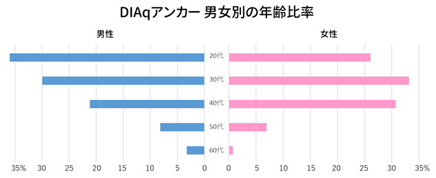 ●「DIAq」アンカーの車種・男女比率(上)、年齢比率(男女別)(中)、年齢比率(車種別)(下)