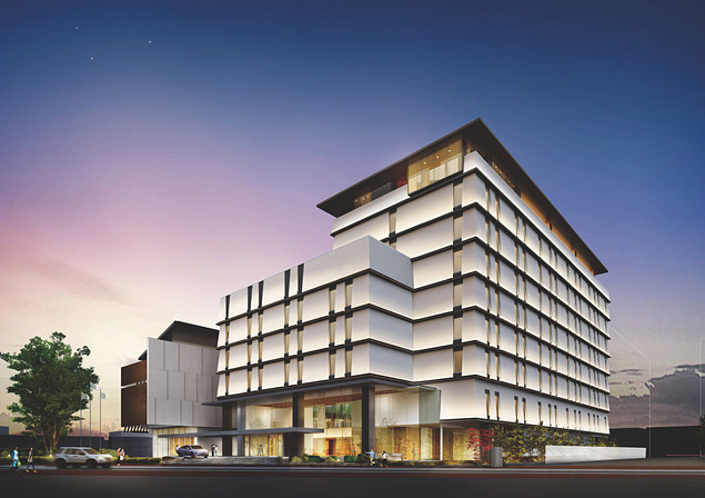 建物は地上9階建てで近隣ホテルとは一線を画す「和」テイストを散りばめ、上品かつ落ち着いた空間を創出。2階には中庭を設置し“ゲストの記憶に残るホテル”を目指す。