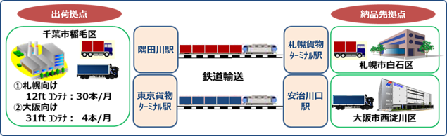 今回受賞した同社の取り組みは、東京都から北海道および大阪府への店舗向け用品輸送において、 鉄道コンテナ輸送を実現し、輸送効率の向上とドライバーの負荷軽減を実現したもの。鉄道コ ンテナ輸送の実現にあたっては、鉄道コンテナのダイヤに合わせた倉庫内作業の設計を行うとともに、特に北海道向け輸送においては、運行遅延・運休等への航空輸送でのバックアップ体制も構築し進めてきた。