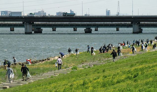 一方、大阪・淀川クリーンアップ活動は、鴻池社長をはじめKONOIKEグループの従業員、毎回参加する此花区長と区役所職員、此花区の「このはな元気!―区長と歩こう―会」メンバー、「大阪海さくら」メンバーに加え、(株)よしもとクリエイティブ・エージェンシー所属で此花区住みます芸人「カリントウ」の二人を含む総勢209名が参加。