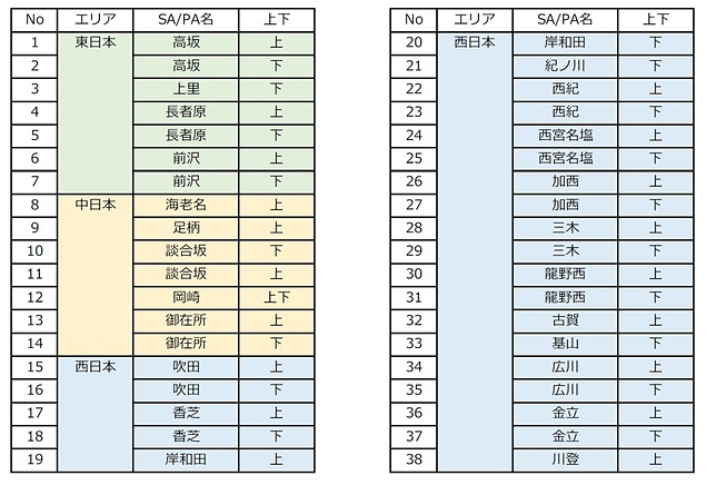 今年度はPR地域を昨年より拡大し、NEXCO東日本・中日本・西日本エリア全国38か所の主要サービスエリアで、テーブルステッカーによる周知を行う。