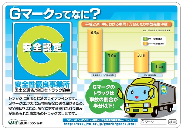 (公社)全日本トラック協会は6月24日、安全性優良事業所認定制度(Gマーク制度)を業界内だけではなく、一般にも広く知ってもらうことを目的に、7月1日~7月31日の期間、GマークをテーマとしたPRを実施する。