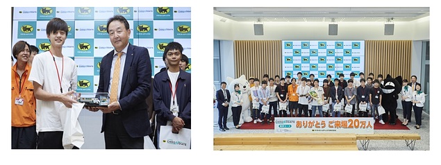 20万人目の来場者は団体で来場していた法政大学理工学部で、当日は同見学コースで記念セレモニーを開催。花束と記念品の贈呈を行った。