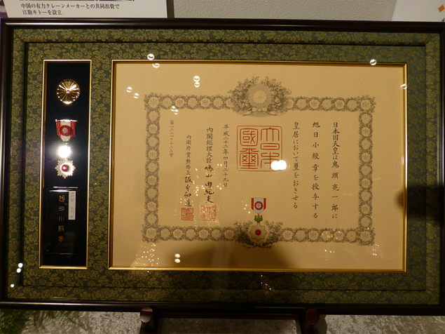 このほか、同氏が旭日綬章受章の際に従業員に向けて挨拶したメッセージも紹介。「今回の勲章は私個人の名前でいただきましたが、受章理由の軸となったチェーン1つをとっても、世界トップレベルにある現在のV級チェーンを作り上げるまでには、大勢の人の知恵と努力がそこに盛り込まれてきました。しかも受賞理由を見ますと、決して技術、製造部門だけではなく、市場に広めた営業部門あるいは資材、総務、経理など全部門の合作による成果だと言えます。受章名義人は私ですが、会社およびこれまでキトーに関わってこられたすべての方がそれぞれお褒めの言葉をいただいたと解釈して、喜びを分かち合っていただきたいと思います」と語ったという。