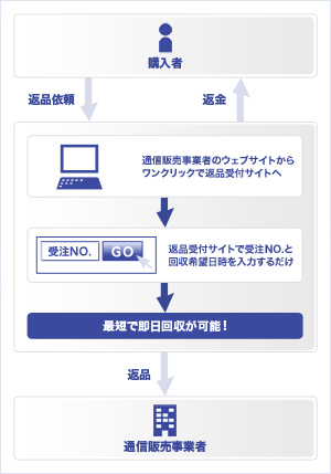 消費者へのサービスとしても次のメリットがあり、手軽な返品依頼や受付、スピード回収を実現できるサービスとなっている。