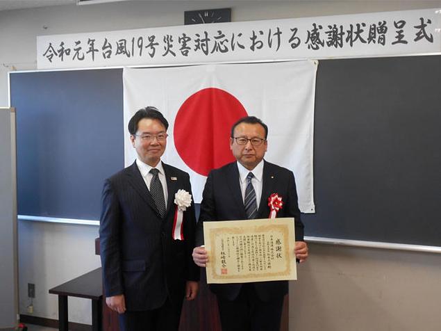 日本通運(株)は2月14日、同社の長野支店が2月13日、令和元年台風第19号の豪雨災害における被災者支援に大きく貢献した功績により、北陸信越運輸局長から感謝状を授与されたと発表した。