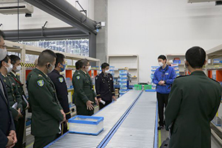 研修では、災害時に水や食料を供給する等の役割も担う隊員の知見となるように、SGHグループのBCP(Business Continuity Planning)や緊急支援物資輸送等、緊急時、災害時に対応した取り組みや、SGLの様々な先進的な物流技術等を講義。また、検品、保管、ピッキング方法を紹介するほか、柏SRC(千葉県柏市)の設備や最新のロボティクス、テナントとして入居されているアパレル関係をはじめとした4社の作業現場を視察する等、計23名の隊員が参加した。