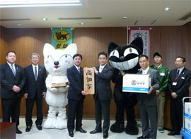 2月3日(月)、高知県庁にてお披露目式を行い、東京都・銀座で行われる委嘱式に向けて「高知家」表札を入れたオリジナルボックスを発送した。