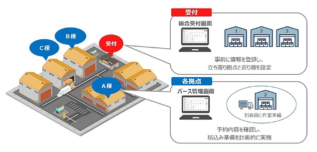 (株)モノフルは9月9日、トラック受付/予約サービス「トラック簿」の機能「複数箇所積み降ろし」で、総合受付で各拠点へ作業の割り振りが可能となる「予約機能」の提供を開始した。