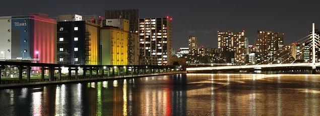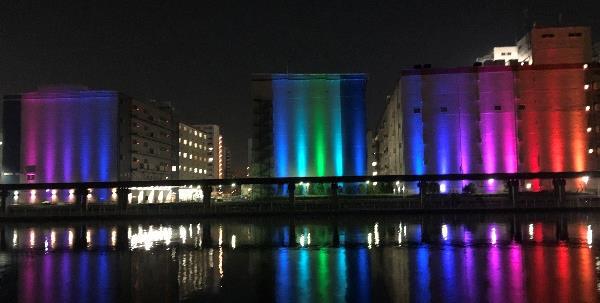 東京倉庫、水辺の物流倉庫をライトアップで演出
