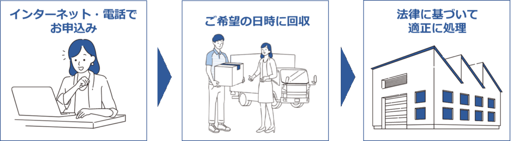 ・インターネット・電話から申し込み後、収集運搬許可を保有する事業者が希望日時に自宅へ回収に伺う。