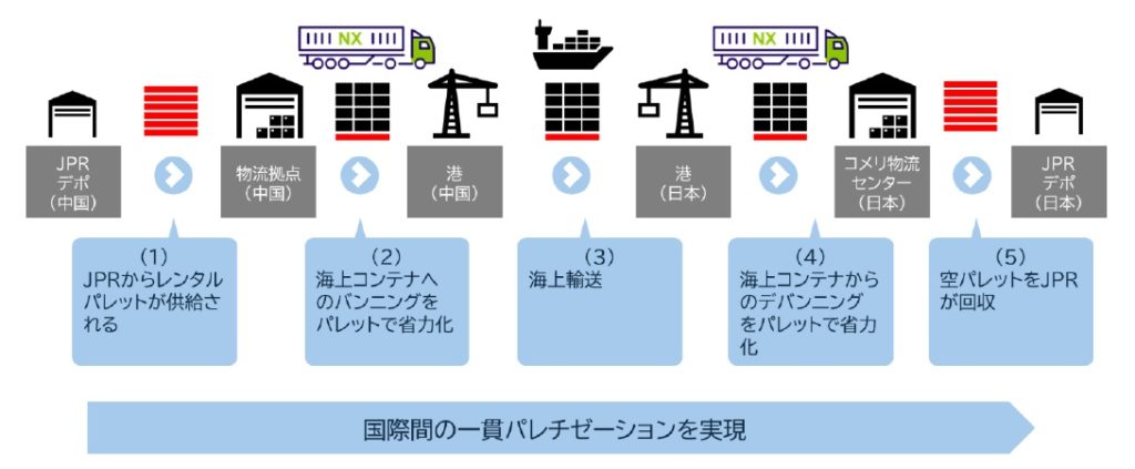 コメリと日本通運は2025年10月にレンタルパレットによる国際間の一貫パレチゼーションを開始した。
