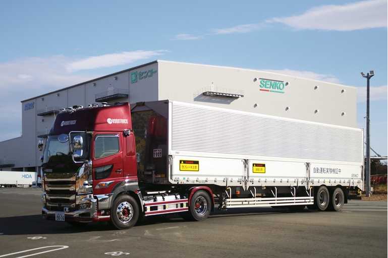 センコーグループホールディングス㈱は2月10日、オリックス自動車㈱、センコー㈱、㈱ロボトラックの3社で構成される「L4物流自動運転トレーラー推進協議会」がこれまでの開発成果を踏まえて、センコーが中継輸送を目的として展開する拠点「TSUNAGU STATION浜松」と「TSUNAGU STATION新富士」間において、セミトレーラ型自動運転トラックを活用した初の公道実証走行(※)を同日より開始すると発表した。