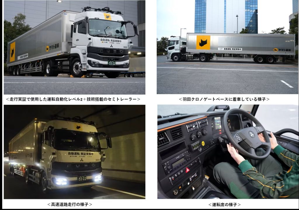 ヤマト運輸㈱は2月26日、自動運転の実用化に向けた取り組みとして、三菱ふそうトラック・バス㈱および㈱ティアフォーと共同で、運転自動化レベル2+(部分運転自動化※1)技術搭載のセミトレーラを使用した幹線輸送の走行実証を実施したと発表した。今回の実証では、ヤマト運輸が実際に輸送する荷物を積載し、車両性能や安全性、実用化に向けたオペレーション等を検証した。