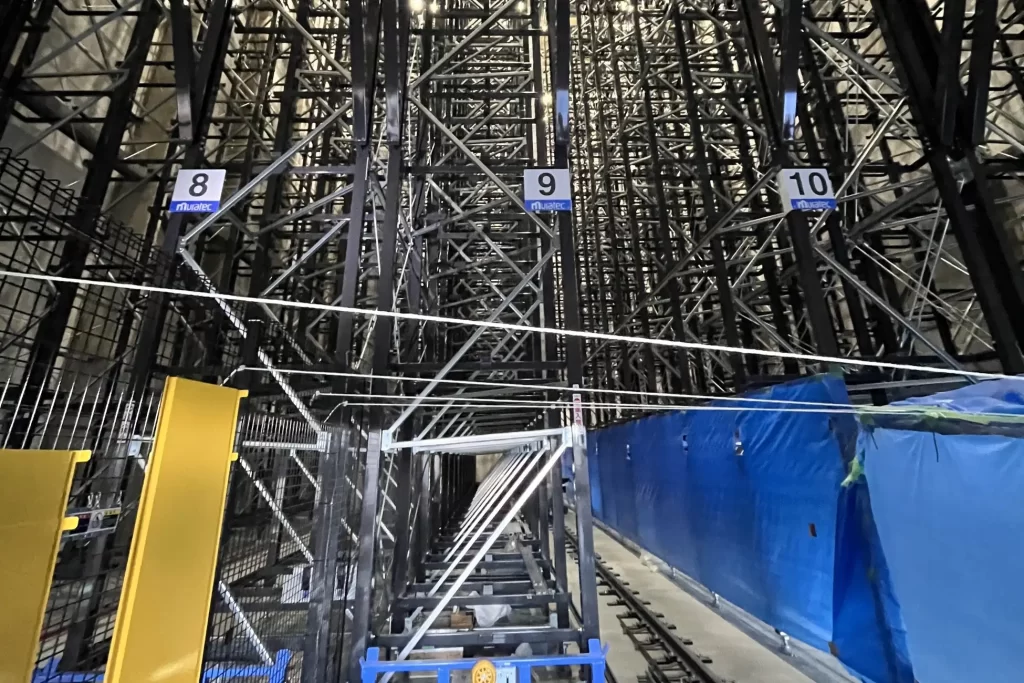 同拠点では、危険物倉庫と一般物倉庫を各2棟新設し、うち各1棟に高層自動ラック倉庫を導入した。高層自動ラックは、保管から入出庫までを一体で自動制御する最新の設備で、天井空間を活用した立体保管により、同じ敷地面積でも多くの商品を保管できるほか、入出庫作業の省人化を実現する。また、入出庫および在庫管理には、ハンディターミナル(※1)を用いた検品・管理システムを採用し、作業の標準化とヒューマンエラーの抑制を進めることで、作業精度と業務効率の向上を図っている。