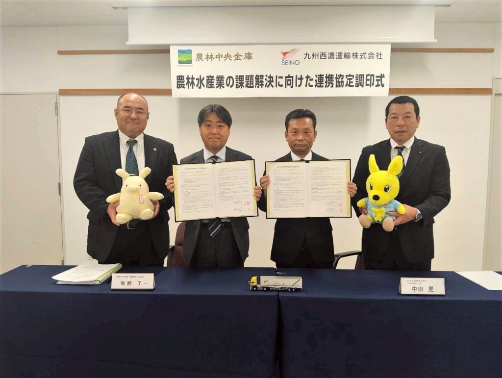九州西濃運輸㈱と、農林中央金庫長崎支店は9月19日、農林水産業・環境・地域課題解決を目的とした連携協定を締結した。