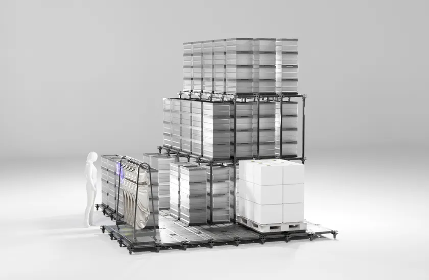 ※1:①超収納効率(通路用スペースが不要かつ天井付近まで収納可能な高い収納効率)②超スループット(全棚同時稼働により高密度に収納された商品の迅速なピッキングが可能)③超柔軟性(短期間で容易に設置や移設が可能であり、様々な搭載物・場所・用途に対応可能)