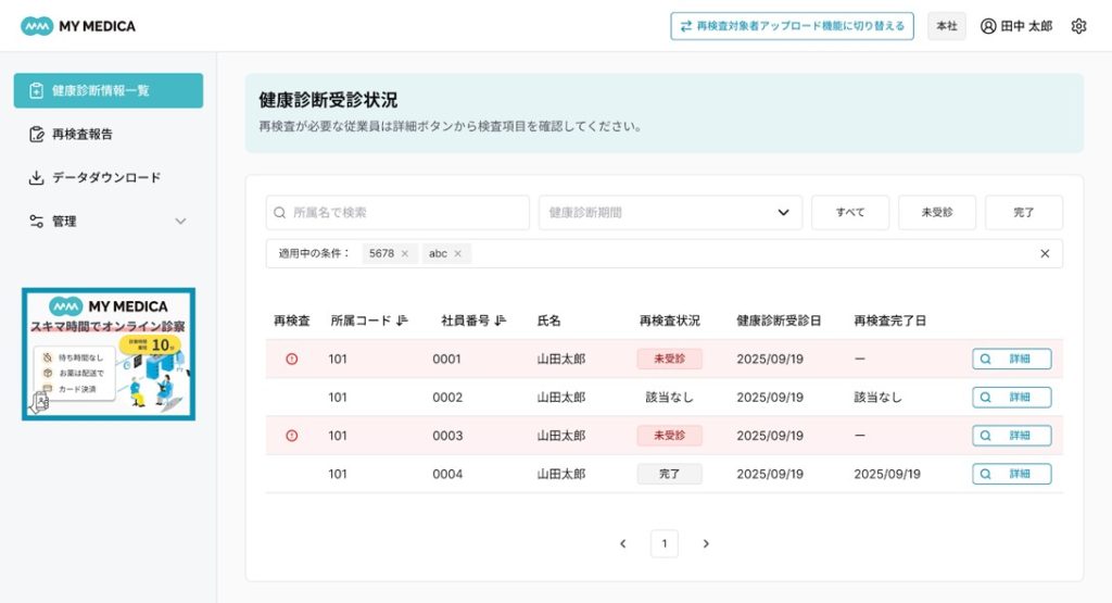 ヤマトホールディングス㈱傘下の㈱MY MEDICAは3月23日より、契約企業とその従業員を対象に、再検査の自動判定からオンライン受診までをアプリで完結する新機能の提供を開始した。