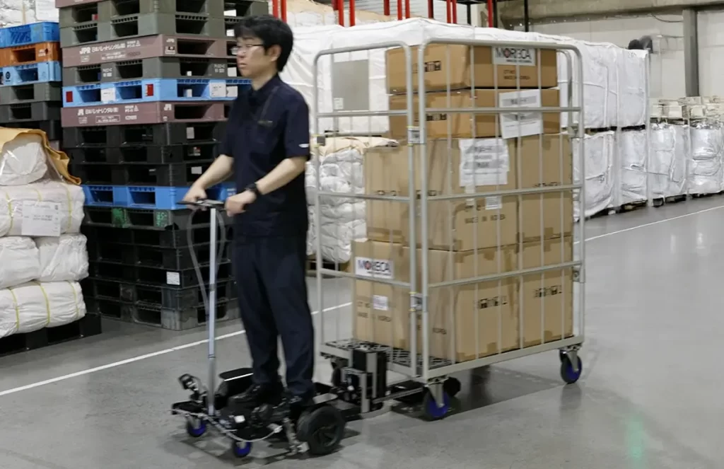 同ソリューションは既存の台車に装着するだけで、作業員の歩行負担を大幅に軽減し、搬送業務を省力化する。初期費用や大規模な工事が不要なため、導入したその日から人手不足の解消と生産性向上に貢献する。