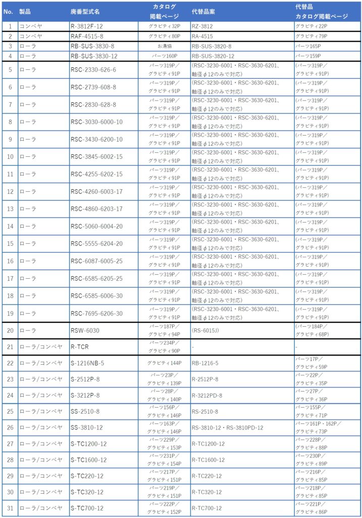 ㈱マキテックは1月23日、同社製ローラ製品の一部製造中止と販売終了を発表した。詳しくは以下の通り。本件に対する問い合わせは担当エリアの同社の営業所まで。