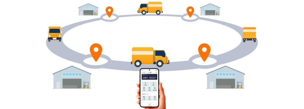 スマートフォンにドライバーと車両を紐付けできるため、運行車両の位置情報や稼働状況をリアルタイムに把握することが可能。