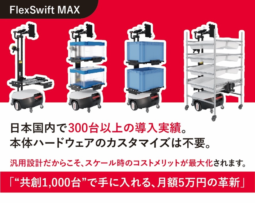 同社は現在、AMRのRaaS(月額定額)料金を「5万円/台」に引き下げる特別プロモーションを企画中。この実現に向けて、1,000台の需要を事前調査で確定できれば、大規模生産によるコストダウンを図り、その分をユーザーへ還元する。通常10万円/台の料金を、5万円/台へと半額で提供する予定だ。